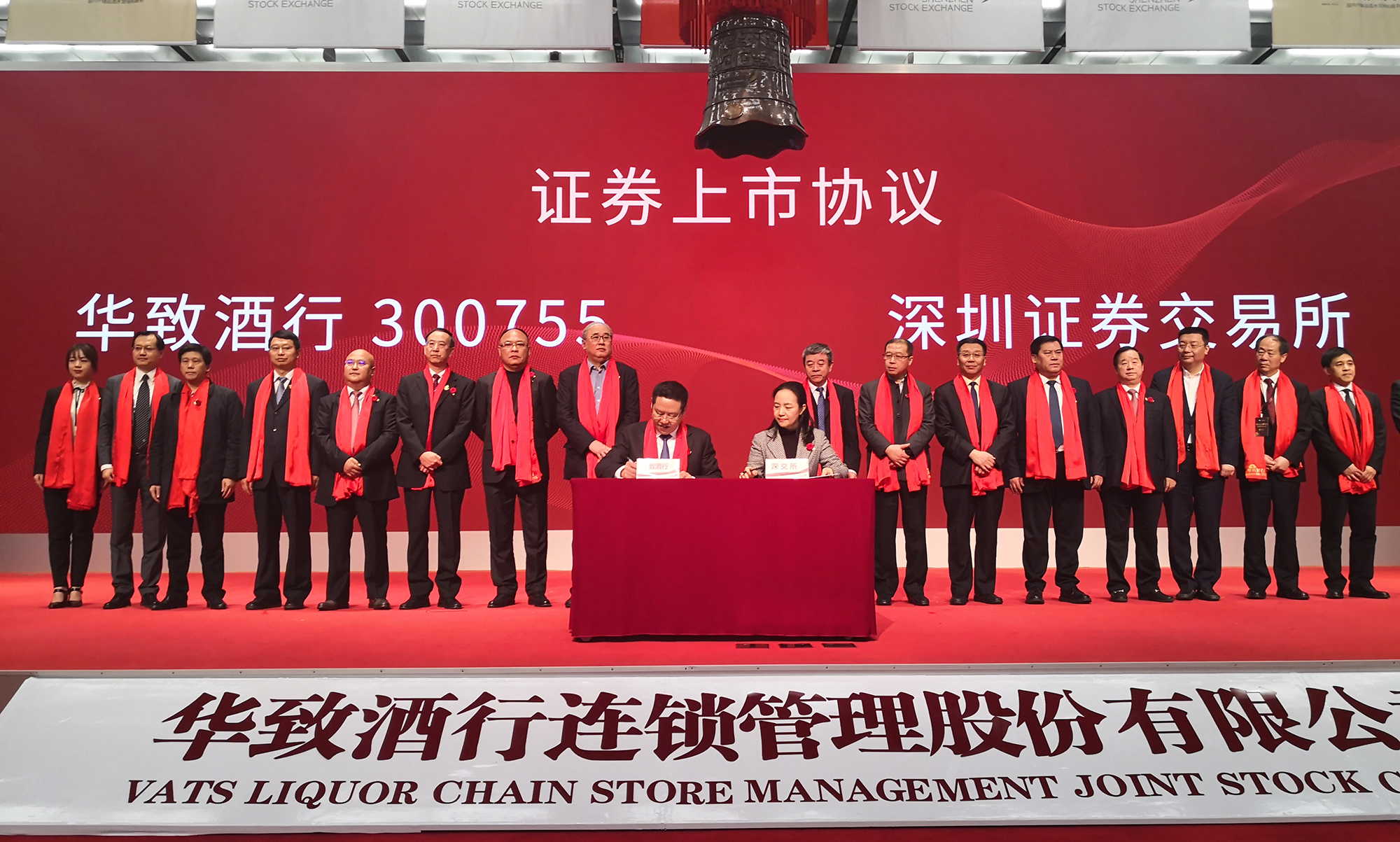 1月29日上午9時30分,隨著上市寶鐘的敲響,華致酒行正式登陸深交所創業板,股票代碼300755,成為中國酒類流通第一股。華致酒行發行價為每股16.79元,募集資金9.04億元,開盤價每股20.15元,開盤后股價沖高至每股23.28元,大漲38.65%。
