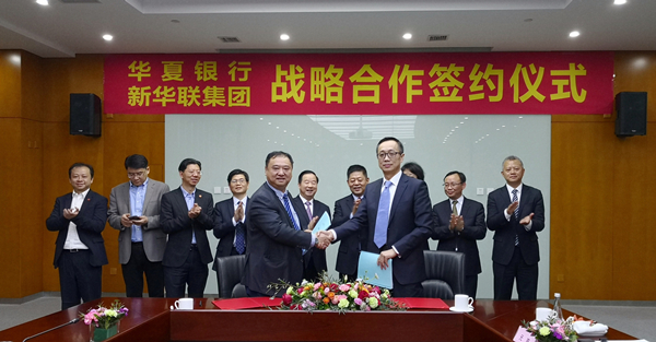3月18日,華夏銀行與新華聯集團在北京簽訂戰略合作協議,華夏銀行將為后者提供總額100億元人民幣的融資服務。華夏銀行北京分行行長李大營、新華聯集團董事局主席兼總裁傅軍等參加簽約儀式。