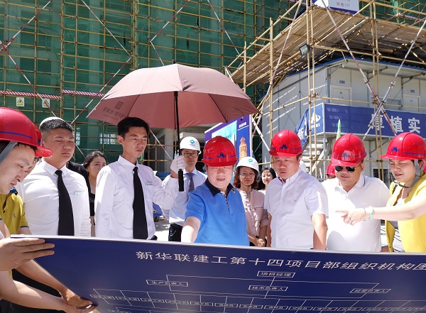 新華聯(lián)建工董事長楊愛兵、總經(jīng)理李棟,新華聯(lián)恒業(yè)常務(wù)副總經(jīng)理郭雅琴、副總經(jīng)理趙斌等陪同傅軍總裁督查。